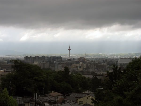 从仁王门望去京都塔,只见乌云一大片,不会转眼又下雨吧!?