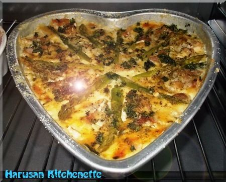 擺盤 (蘆筍, 雞肉, 蒜頭加洋蔥碎末)~ 烘烤, 等吃~