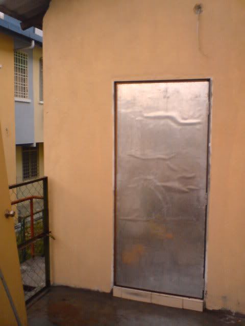 把普通的3夹板门+上1片锌片。。。防水