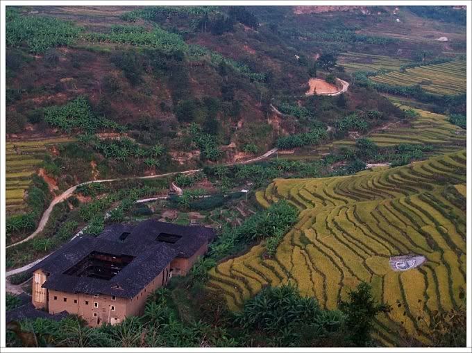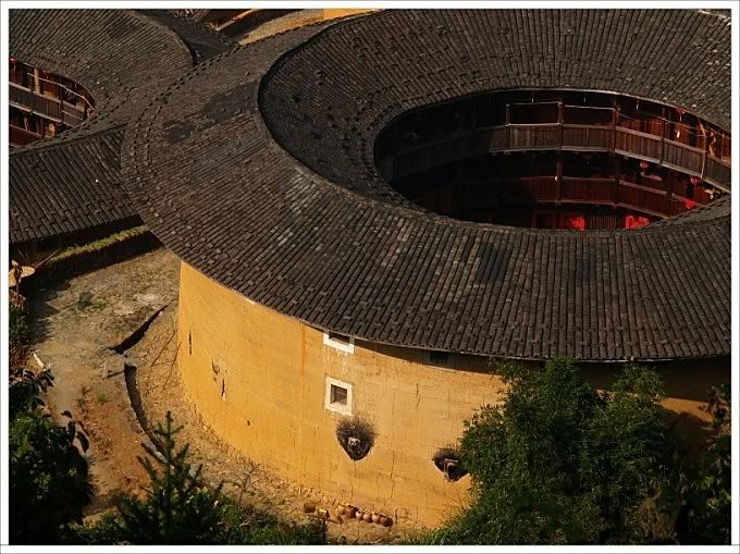 是的,時間不夠,我只去了振成樓,振成樓位於湖坑鄉洪坑村,號稱土樓王子,有最富麗堂皇的圓樓之稱。eldy兄沒到振成樓,就看看小弟用傻瓜機拍的振成樓吧。。。