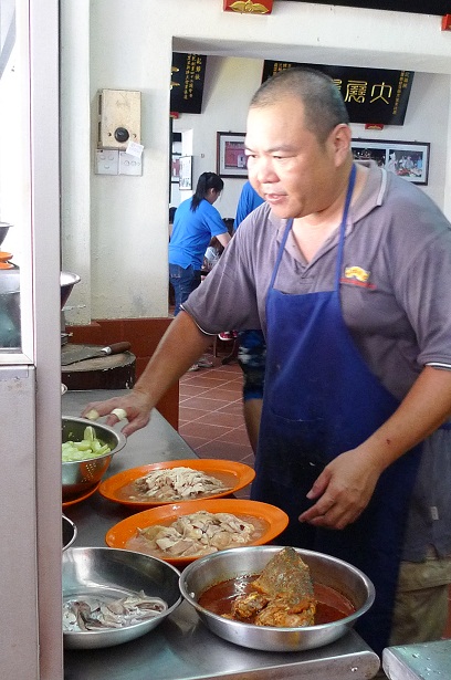 老实讲啊,比起很多我吃过的海南鸡这里不算是最棒的,但也不错吃,搭配起鸡饭团一起吃姑且算是一种特色吧!这里排队不会很久,比起中华茶室的要很多了,若叫我去中华茶室排队我想我是不会了。和记就看你要不要排咯,如果是旅客心态就会觉得既然到了古城没吃鸡饭哩就好象少了什么似的感觉吧!就好象satay celup一样,其实也没什么特别的,但就是当地的一种特色咯 |