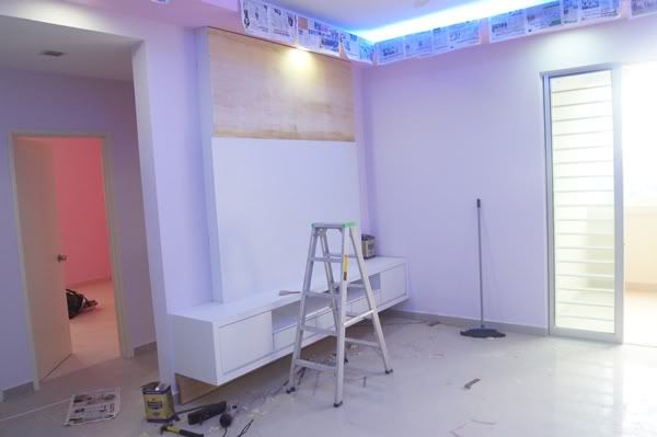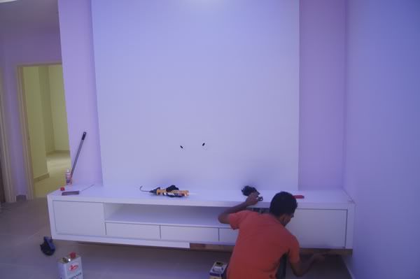 白色鞋柜和白色电视柜配上粉粉的紫粉红好漂亮哦!