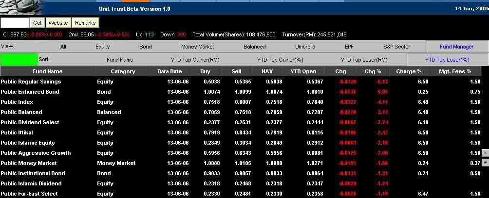 PUBLIC MUTUAL表现亏损的基金(从1月2日到6月13日为标准)