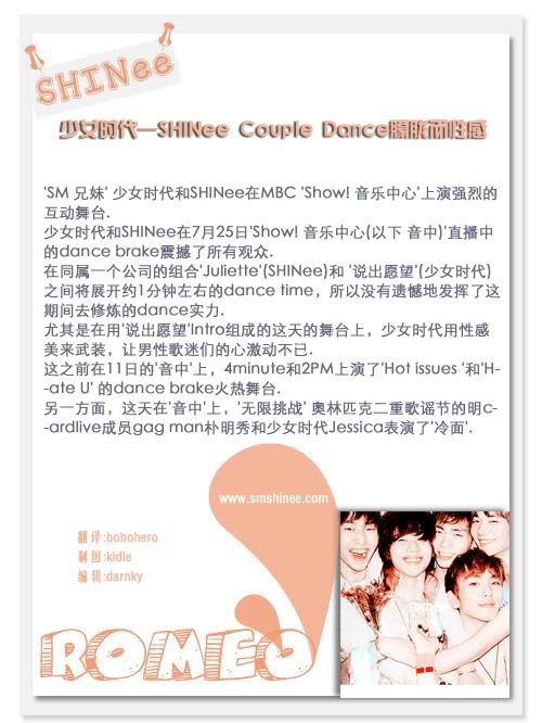 在同属一个公司的组合'Juliette'(SHINee)和 '说出愿望'(少女时代) 之间将展开约1分钟左右的dance time,所以没有遗憾地发挥了这期间去修炼的dance实力.