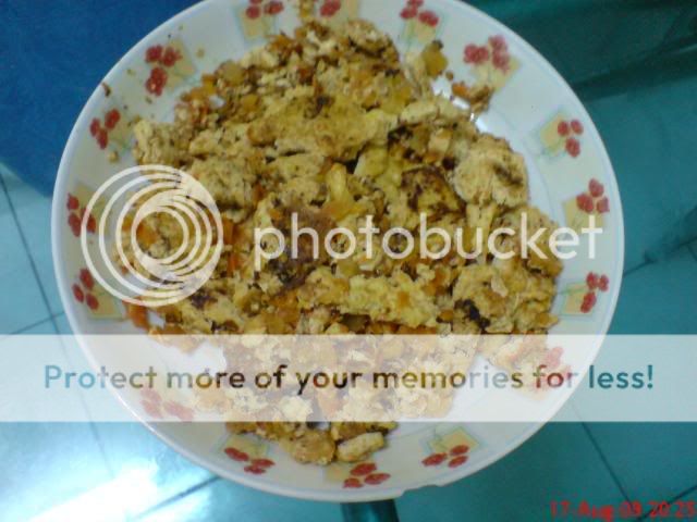 鸡蛋三个打碗里加一咖啡匙盐充分搅打,瘦肉末约一两,喜欢加香葱的人可用两棵切碎,油两匙(如果是化猪油就只需一匙)蚝油两大匙,熟白芝麻适量。