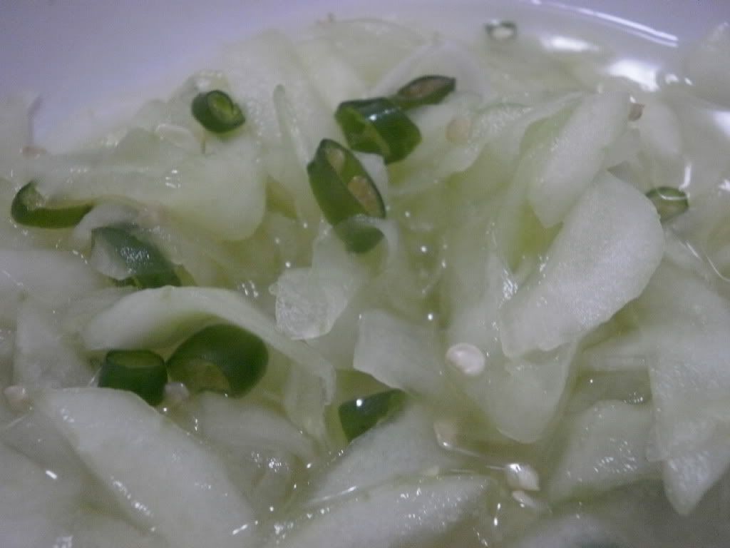 材料:黄瓜1条,盐1小茶匙,糖2汤匙,指天椒数棵