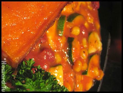 配菜有烤番薯,番茄豆。番茄豆乃我最讨厌食物前五名。不过此乃BBQ酱的烧烤番茄豆,尚可入口。