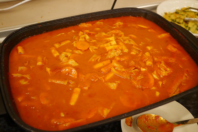 吃起来很嫩滑。长长一条的韩国年糕是我第一次尝试,