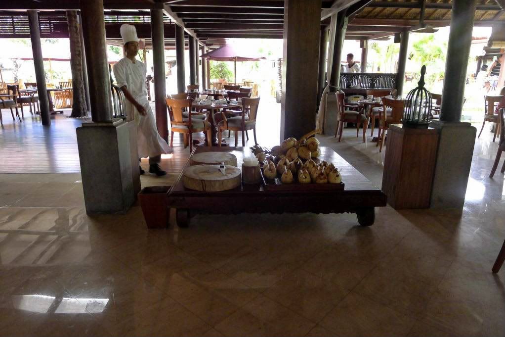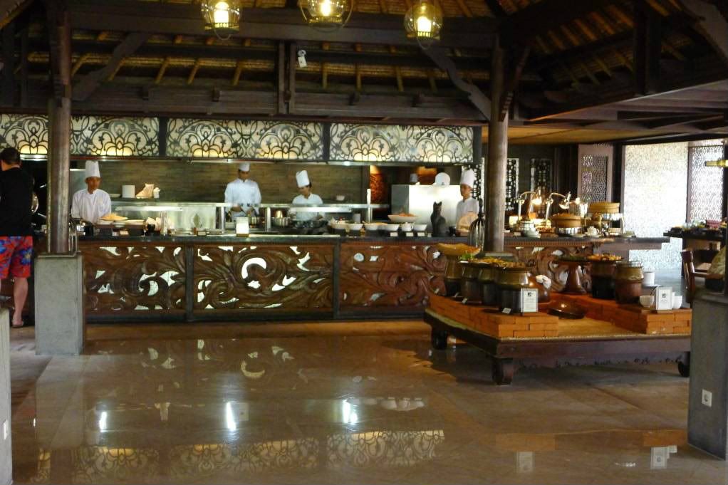 度假村中的Padi原本是一家泰国餐厅,此次经过全面翻新和扩建后,餐厅主要菜式也以“泛亚风情”为理念进行了更新。汇集了印度、印度尼西亚和泰式风情的美味料理。每天早晨在Padi餐厅供应的国际自助早餐也旧貌换新颜,六个不同风味的料理台将带来美食家级的用餐体验,这就是住酒店房每天用早餐的地方啦~~这里是四个露天的茅草屋顶凉亭,该巴厘岛餐厅采用开放式亚洲传统风格的厨房,在这里,客人可以观看印尼、印度和泰国厨师一起以娴熟的技巧和快速的动作准备来自他们各自国家最受欢迎的菜品。帕迪餐厅四周被让人联想起稻田的梯田形荷塘所围绕~~让你吃的更舒服. [/img] |