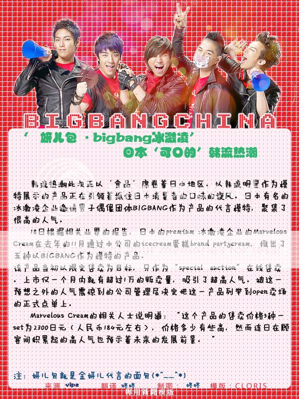 ‘妍儿包 ·bigbang冰激凌’日本‘可口的’韩流热潮
