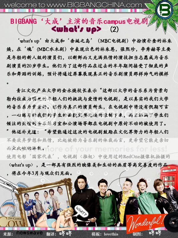 BIGBANG‘大成’主演的音乐campus电视剧<what's up>