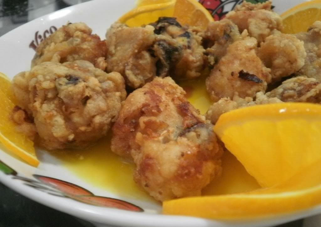 鸡肉块腌制盐跟薯粉约1小时,然后拿去炸熟待用