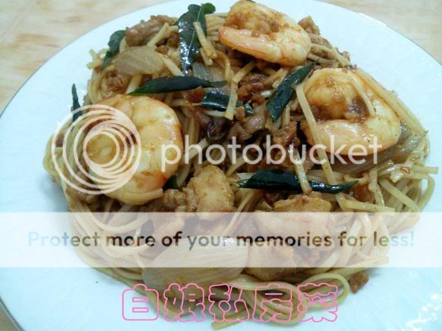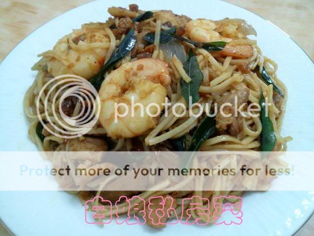 甘香酱今天给它做个了断。。来一个甘香酱炒寿面。。老公不喜欢吃sotong。。就用肉片和大虾来承托吧!香。 ...