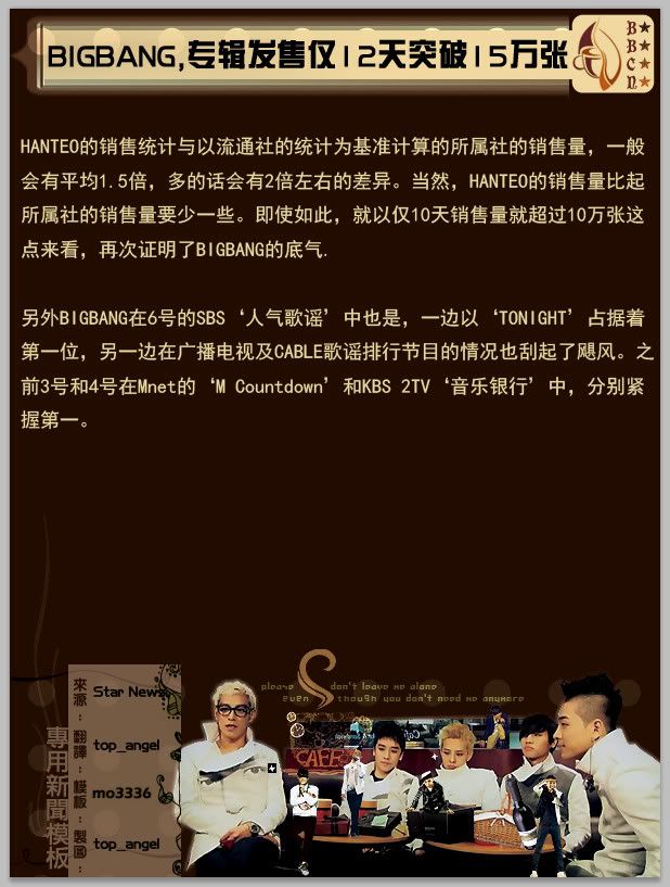 偶像组合BIGBANG无论何时都红火。从出道后在歌谣界掀起'Big Bang'并并高居顶峰已有5年。不止是他们的音乐与时尚,正如拥有众多少女Fans的组合一般,一举手一投足都是话题。最新时隔2年3个月后发行的BIGBANG Mini4辑不仅横扫了所有音源榜单,专辑收录的6首歌曲全部登上了上位圈。不仅仅是这样。还进入了美国最大音乐在线网站iTunes综合榜单的'TOP10'并登上了Billboard(12日)World Albums部门的3位。而这是纯粹为国内活动而制作的,毫无当地(美国)宣传活动便实现的成果。尽管Wonder Girls,BOA等曾进入过榜单,但她们已在美国发行了专辑并进行了活动。