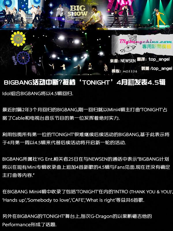 BIGBANG活动中断?接档‘TONIGHT’4月初发表4.5辑