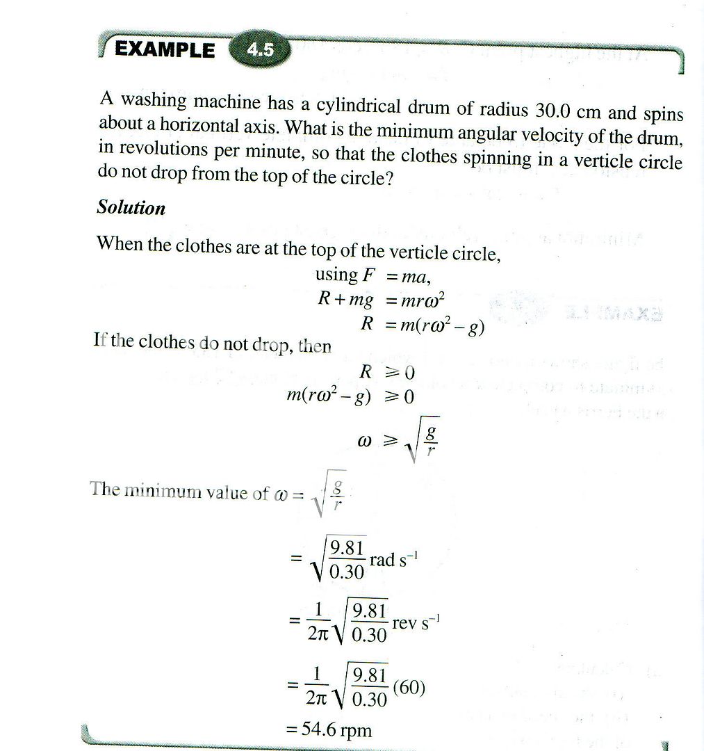 也就是衣服要做circular motion所需的向心力全部由衣服的重力所提供