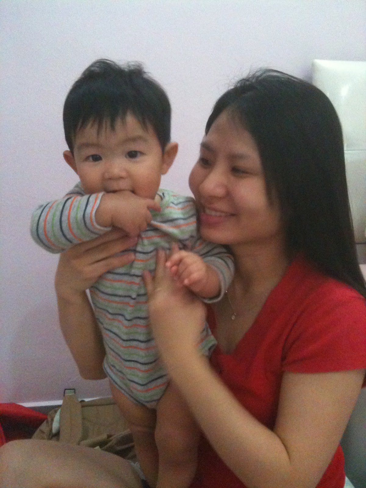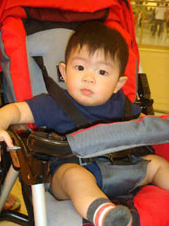 现阶段的恺是充满着精力,好动和好奇心,任何东西他都要摸摸看,动一动他才甘愿。他又很爱爬高爬低的,尤其最爱客厅的咖啡桌,每次都要扶着桌子站起来,然后就开始攻击桌上的东西,晕!!! 他呢,站又不是很稳,没两下就脚软跌下来了,真是每分每秒都要盯着他才行。