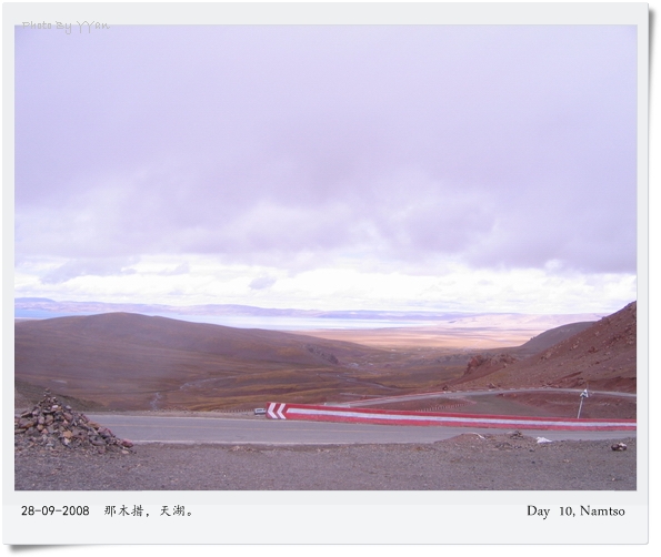 有些不知身在何处的迷惘中,看着这片灰蒙蒙的湖, 这是我在网络上看见的蓝白澄明的圣湖,纳木措吗?