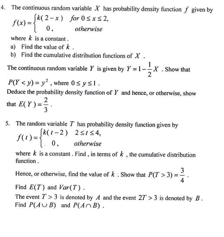 第五题,也是一样..the event T>3 is denoted by A and the event 2T>3...find... |