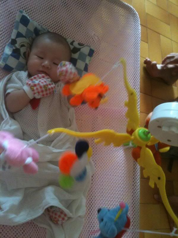 晚上七点蕾宝宝醒过来后我马上泡奶给她喝,没想到她喝饱后又睡着了。。。我本来还想跟她玩一会儿的。因此我就坐在床边仔细看着我的蕾宝宝。。。感觉上样子好像变了。。。哈哈哈!才三天不见。。。是我神经过敏把。