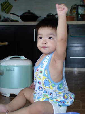 Jerry才14个月大,但看来像2岁。。。hmmm。。。。我相信的,因为我那一天看到两兄妹,哥哥才两岁,但看来像3-4岁,妹妹刚周岁,但看来像两岁,我的孩子(18个月)在他们中间,看来像1岁。。。。 |
