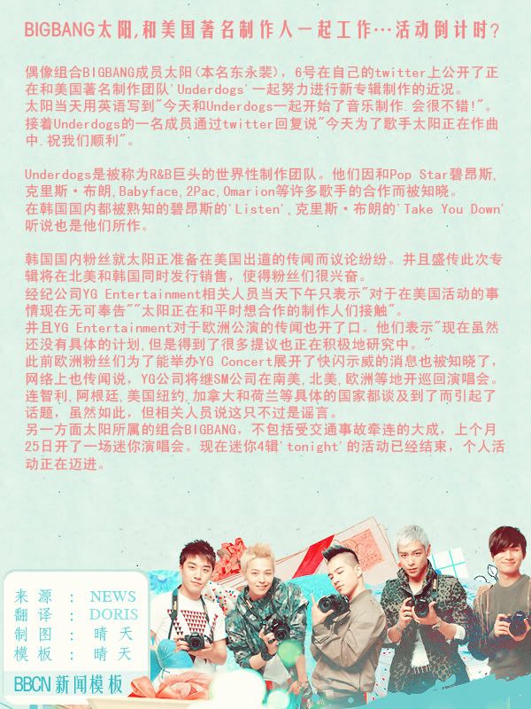 BIGBANG太阳,和美国著名制作人一起工作…活动倒计时?