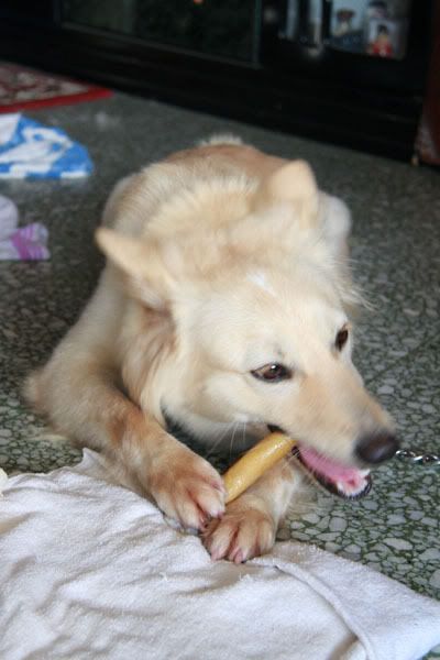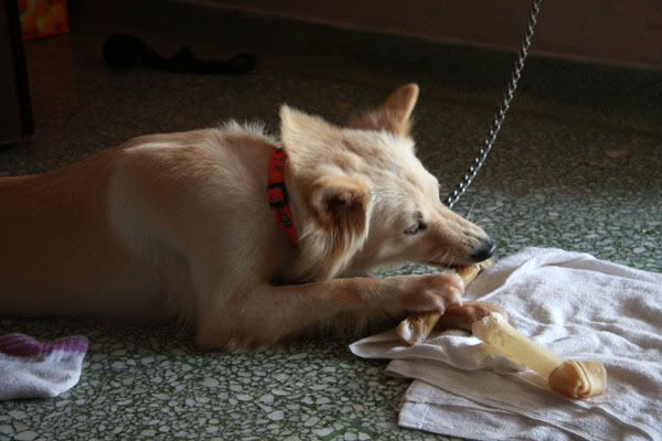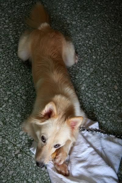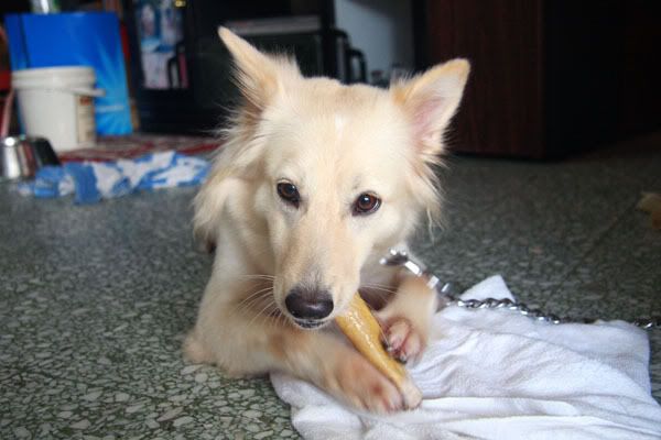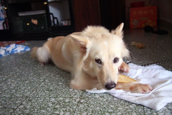 虽然小白很好玩但我倒希望它的主人快快带它回去,因为它很吵很爱乱吠...受不了它。