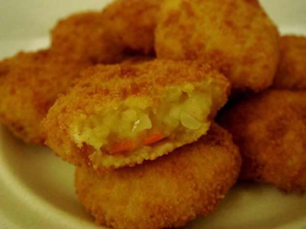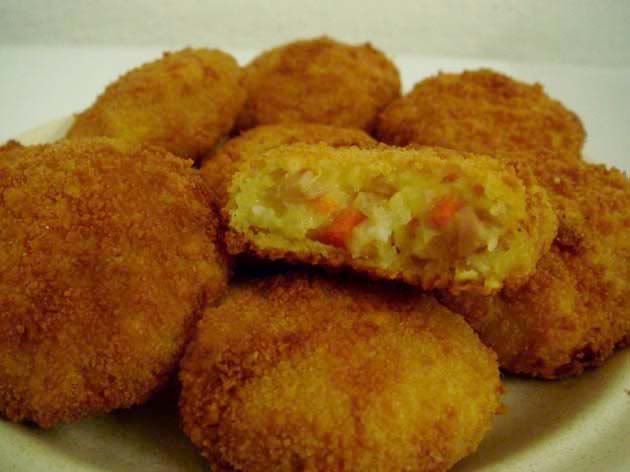 可乐饼的名字取自法语中的croquette,它是在16世纪西餐开始传入日本时,逐渐开始被日本人民接受,然后备受钟爱的美食。在日本曾经还流行过“今天吃可乐饼,明天也吃可乐饼”的歌曲。歌曲本意是一个新婚的丈夫称赞妻子的可乐饼做得十分美味,但是后来妻子每天都让丈夫吃可乐饼,使得丈夫十分失望。且不论丈夫如何失望,但是这首歌曲却流行起来,而且可乐饼也跟着走红到现在。。。