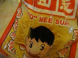 3.接着把面线加入,马上淋上少量的胡椒粉,适量黑酱油和生抽快炒即可。