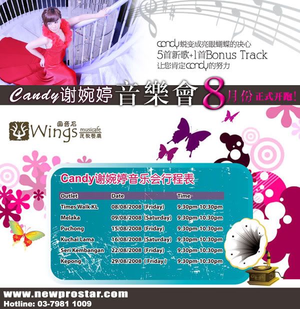 Candy谢婉婷音乐会 8月份 Wings Musicafe 正式开跑 敬请密切留意