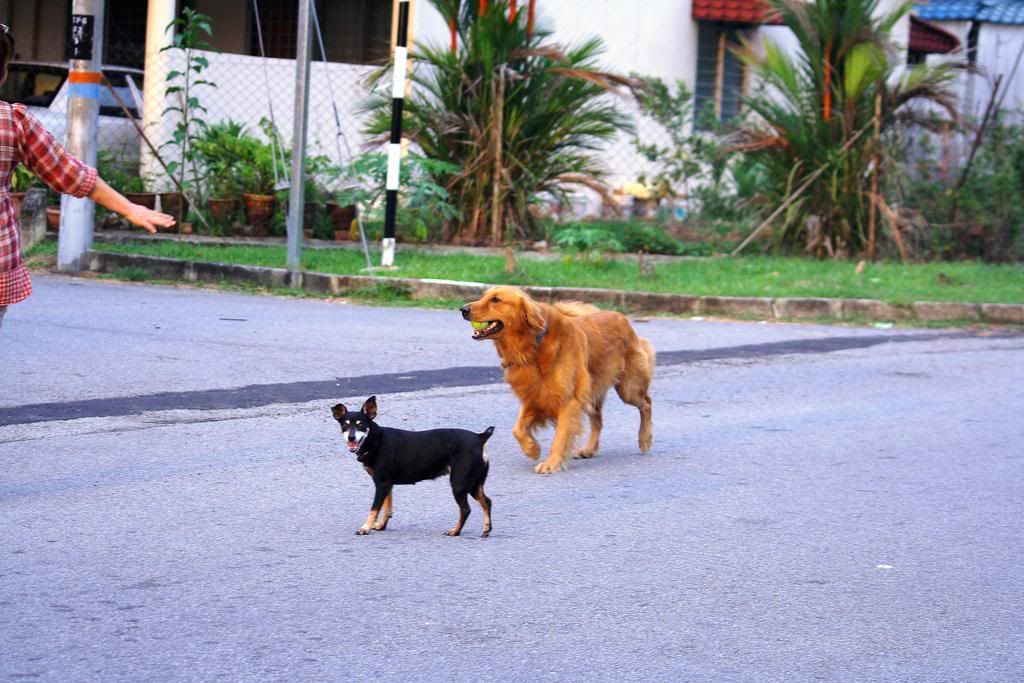我们家有3粒球是他从对面家咬来的。 |