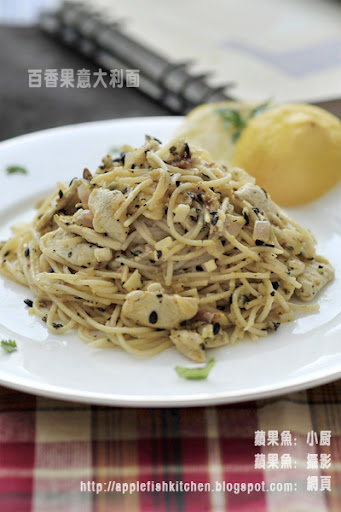 这个面强力推荐的,太太好吃了!我煮很多勒,结果一条都不剩!百香果ho,我阿嫲家有种,果子成熟时多到不懂要怎么才能派完,在小鱼很努力的研究后,我发现它是继香橙,柠檬,苹果后,非常适合做料理的水果,等我从香港回来,一定要再好好研究下!因为我真的很喜欢百香果,酸酸甜甜很好吃,不过阿嫲另一棵百香果树的果实很酸,那就拿酸的莱做菜咯~~~不然很浪费勒!
