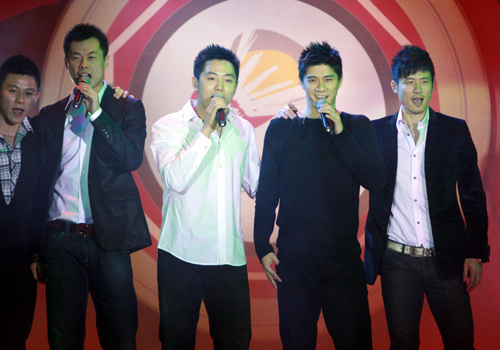 庞龙则和李永波压轴,合唱了他为羽毛球队写的歌曲《干杯朋友》,唱之前,庞龙一通表白,原来在电视上都是录音,这次可是真唱,别说,李总教练和他的和声还真是很高亢。得到了大家的掌声。