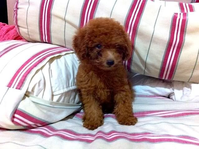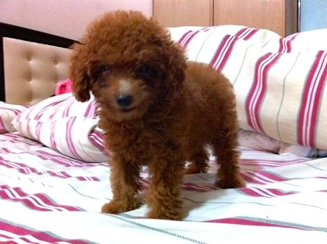 刚从某home breeder手上买了一只red toy poodle。。。