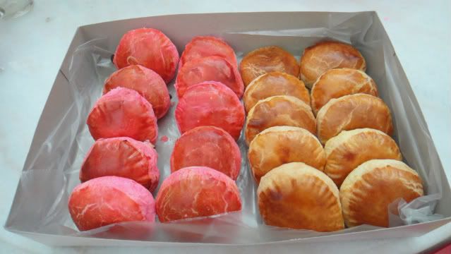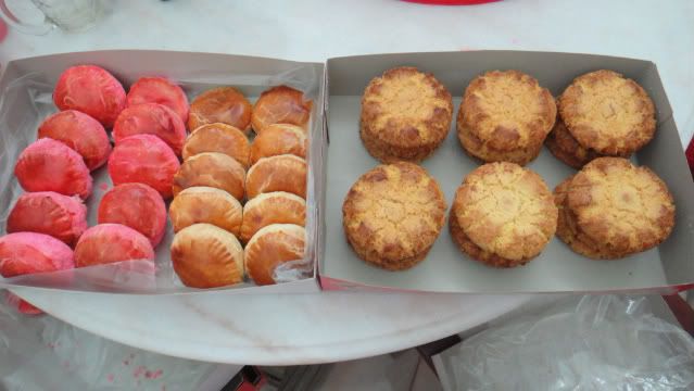 红色外皮的,里面是黑豆沙,可可色的是白豆沙,右边那盒是合桃酥~