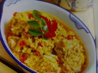 做法:1)倒入麻油 ,炒香姜丝 ,加入蛋液 ,煎至两面金黄色 ,放入黄酒煮滚 .