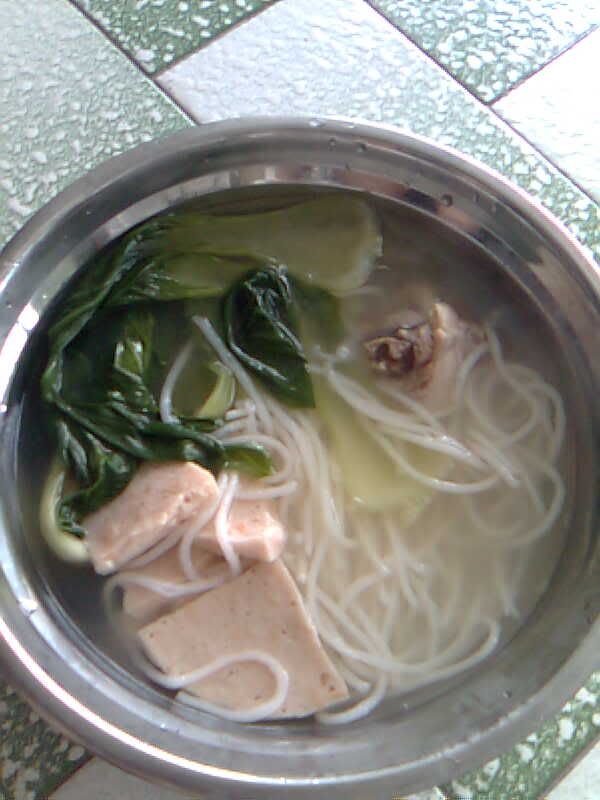 菜,不应该下去一起煮的,因为菜只许烫,烫一分钟为合格~ |
