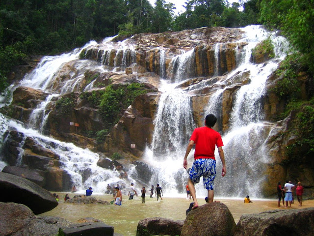 第三天一早(五点)起身就发现外面下着大雨(那我们的彩虹瀑布不就‘泡汤’),那‘傻瓜’执行者就打电话给那负责‘彩虹瀑布’的人。不过‘意料中事’,他说雨太大会有危险所以就要取消了。T.T...那也没办法,我们只好去用我们的早餐然后到另一个‘Hutan Lipur SungaiPandan瀑布’。听说这瀑布也不错哦!那我们就来看看这‘Hutan Lipur Sungai Pandan瀑布’。
