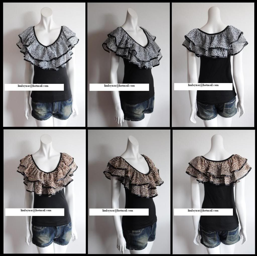 137) Lacey match with leopard Chiffon singlet top ~ RM36