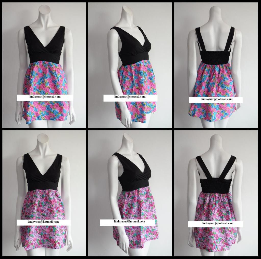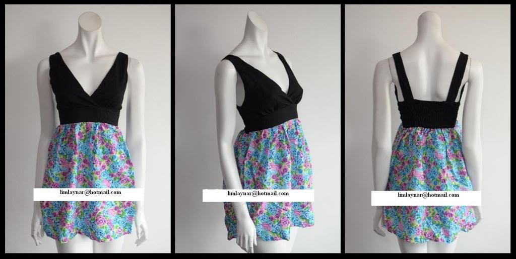 3) H3. Floral chiffon dress; sweet flower print; come with lining ~ RM56