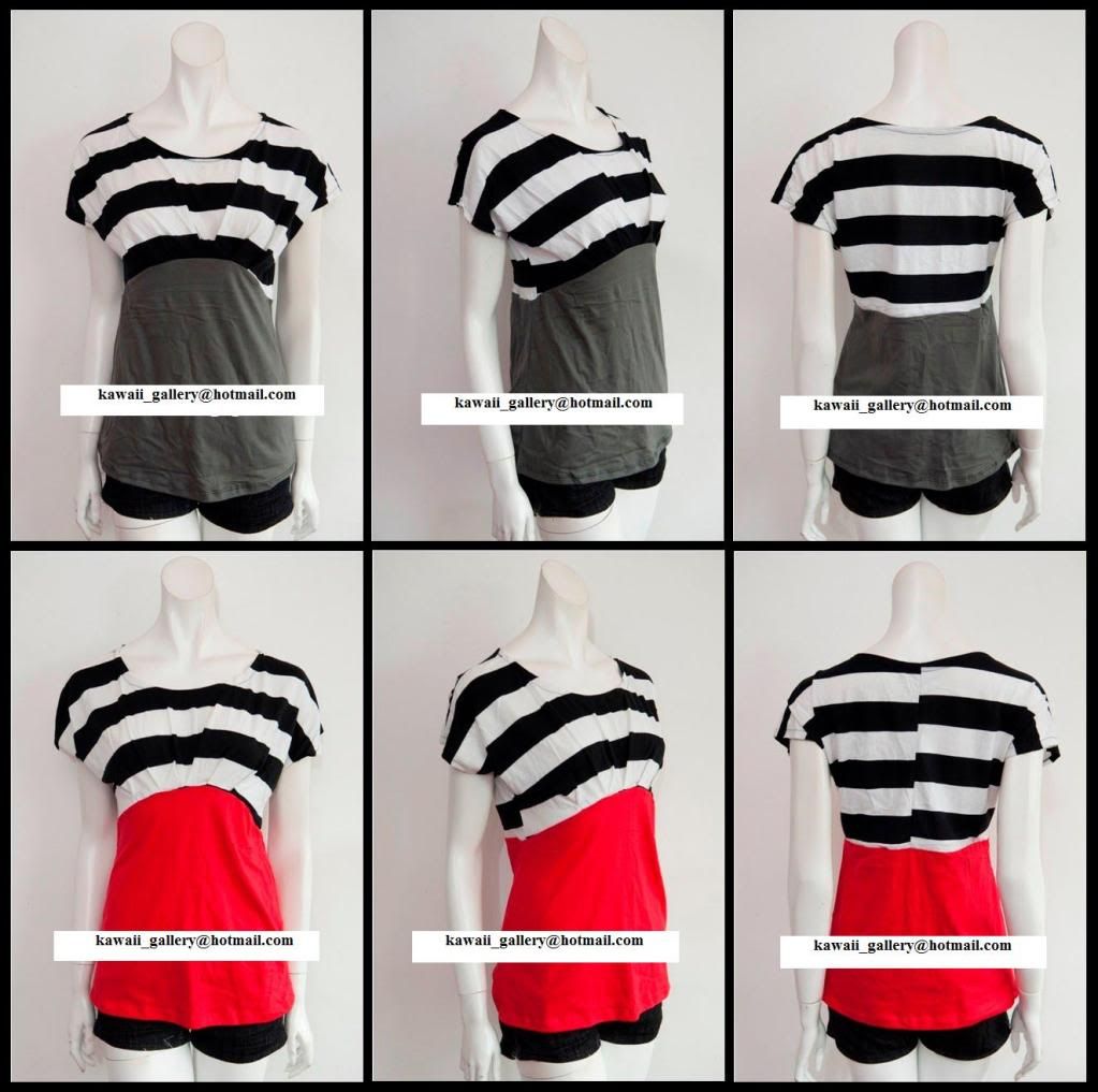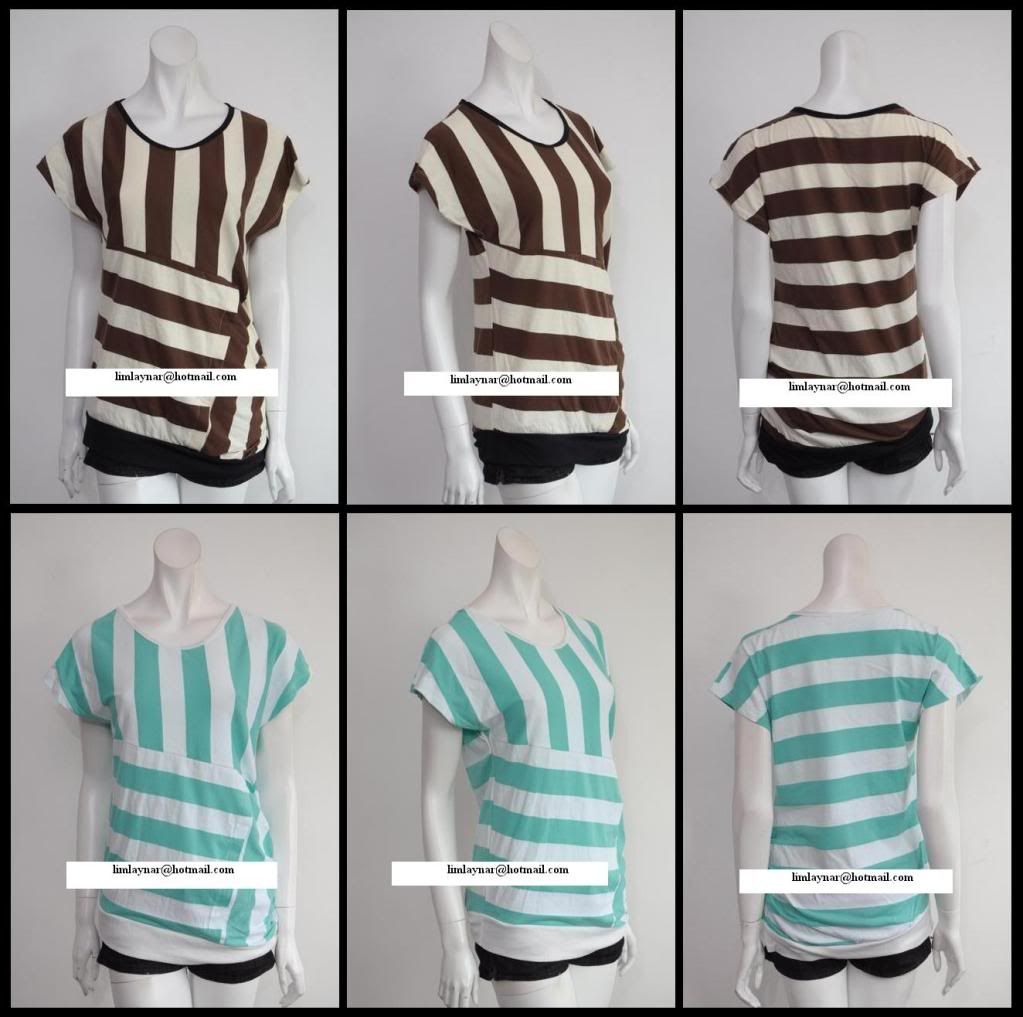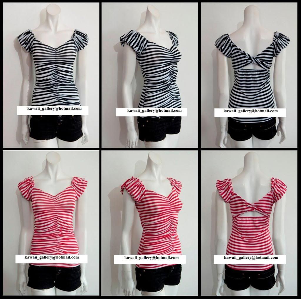 16) F14 Sexy open back top; babydoll blouse. Square small V with stripey design ~ RM49