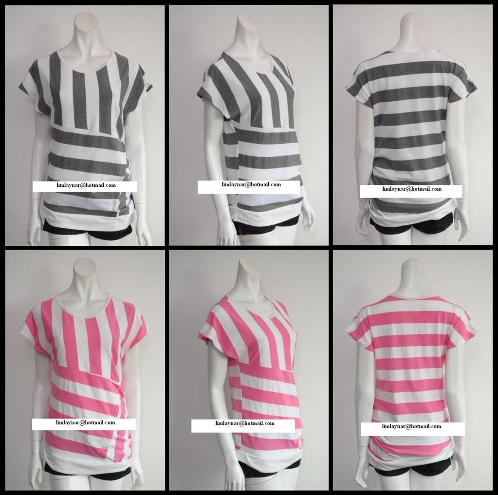 134) Stripey side button tee; nice quality cotton~ RM39