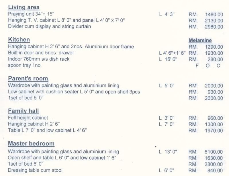 为了方便大家compare 价钱,我把quatation post 上来吧。