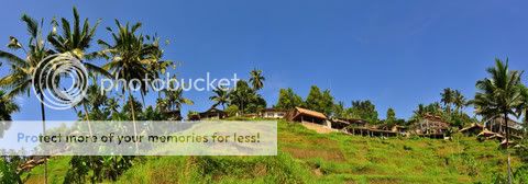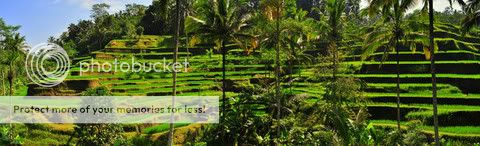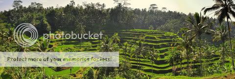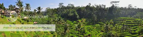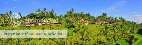 再来拍 Tegallalang 全景共六张照片,可以看出从左到右的面光和逆光的差别(蓝色至曝光掉的白色的天空)。