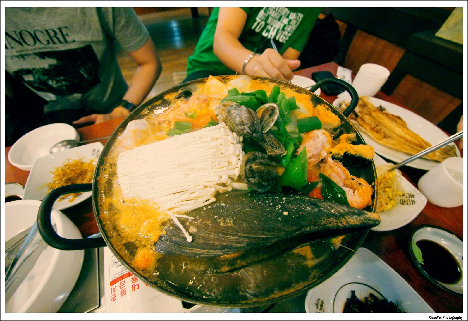 大约1个小时,我们终于抵达了今晚下榻的pansion,green sung pansion. 下了车,热情的老板已经在外迎接我们了。拿了钥匙,分配了房间就各自把行李搬进去。一进去房间,里儿有个小厨房,小小的阳台,还有那温暖的卧室。大约10分钟后,我们就出发去解决我们今晚的晚餐了。司机就带我们到附近的餐馆用餐。到了餐馆,司机帮我们点了道海鲜火锅。不多久,一大锅的火锅端上座,看到火锅里的海鲜都让我们目瞪口呆,一只只活生生的,蚌,虾,螃蟹等等,还在热锅了挣扎。。。。顿时,aunty julie竟然讲了一句很可爱的话:好可怜啊。。。。但是。。。一定很新鲜的!晕!~来~~~~大家开始用餐了。这一餐吃出了海鲜的鲜,还有惊喜。付钱的时候,还已经认定被敲了,但是结果不是,大约RM320而已。值得一提的是,这一餐是我们这旅程里吃得最好吃的一餐了。 |