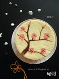 这个蛋糕,比之前那两个圣诞蛋糕容易多了,就只是调粉红色画花,烤好之后,再倒入其余蛋糕糊烤整个蛋糕体,出炉冷却后画梅花芯和枝干就行了。