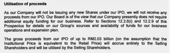 预计将会筹得 RM 2.03billion,这个钱全部给于发售的大股东。