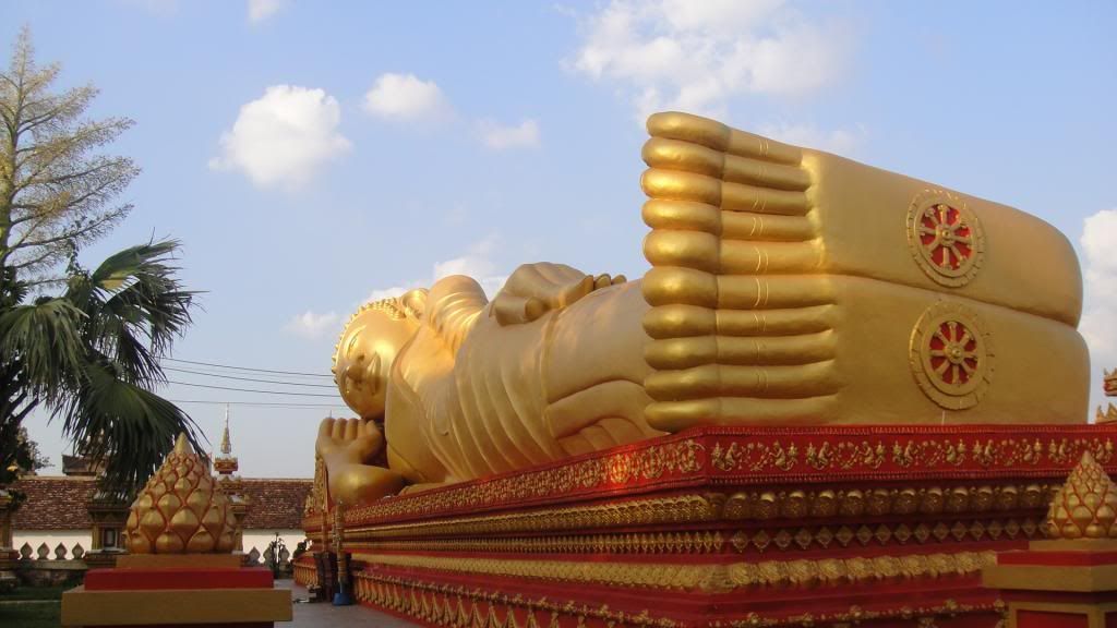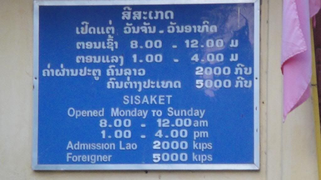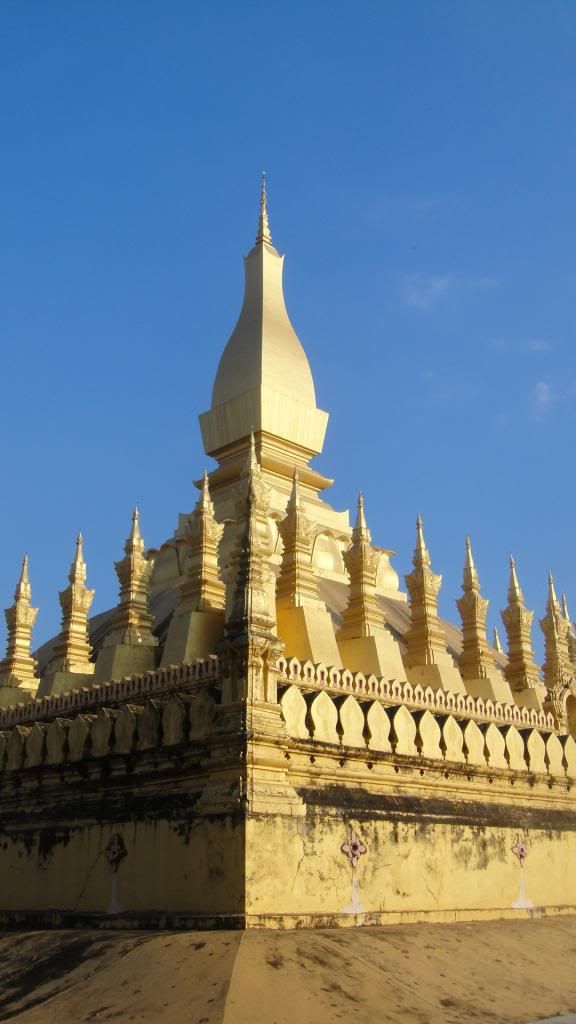 放了行李,我们快快走出去找Tut Tut。幸好前面就有一辆。 我们一说 Tat Luang 对方竟回答 4点关了。这还不要紧,对方说玉佛寺 ,Wat Sisaket ,Talat Sao,凯旋门都是4点关。天呀,现在已经大约3.30,大家开始慌了。原本对方开价到 Tat Luang 是40000 ,若来回是80000KIP。 这时我开口要求包他 2 小时走以上几个地方。我想他应该是看到大家慌张的样子吧,竟然答应了。我们二话不说跳上了车。司机应该也担心我们吃闭门羹吧,竟也加快速度在马路上奔驰。到了 Tat Luang 我们只跟司机讲了一声wait here 便冲去买票。。。 |