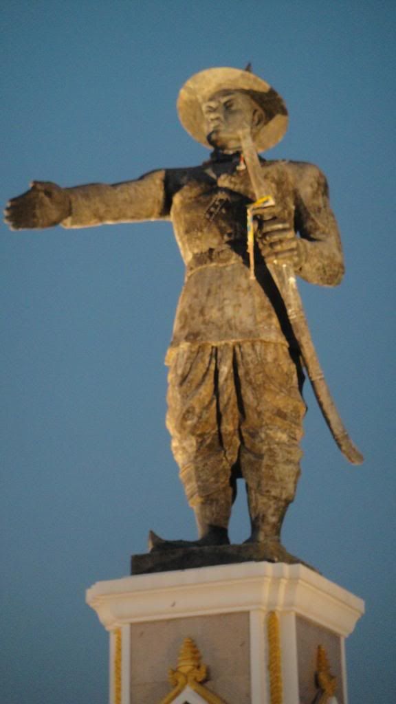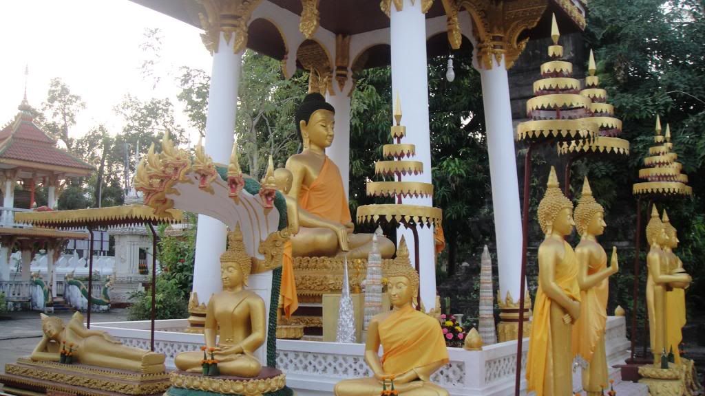 紧接着,我们到凯旋门去。我们原本都没有打算爬上去,所以也没有什么遗憾。 拍了照,看看一会儿,我们又乘TUT TUT 到SISAKET 及玉佛寺。由于时间已超过4 PM ,门已关闭,所以我们只在外面看看,拍拍照就走人。好心的司机过后还特地绕一圈 TALAT SAO ,证明给我们看它已关门休息呢!眼看这时2个钟头的包车时间也快到了,我们要求司机放我们在夜市集。不久,车子经过国王雕像的湄公河河畔,我们赶快要求下车,就这样我们付了钱,结束了2个小时的包车游。真感谢这位好心的司机。。。 |