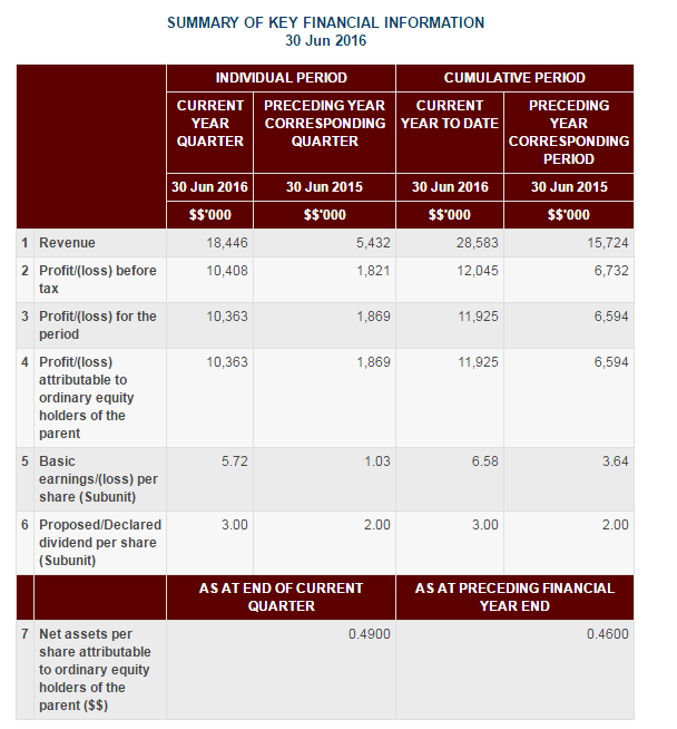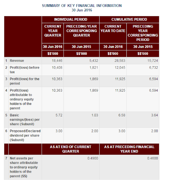这次Q2,2016的季报,记载了近年来最好的‘突飞猛进’,和去年同季相比,营业额飙升240%,Profit before tax 也升至472%